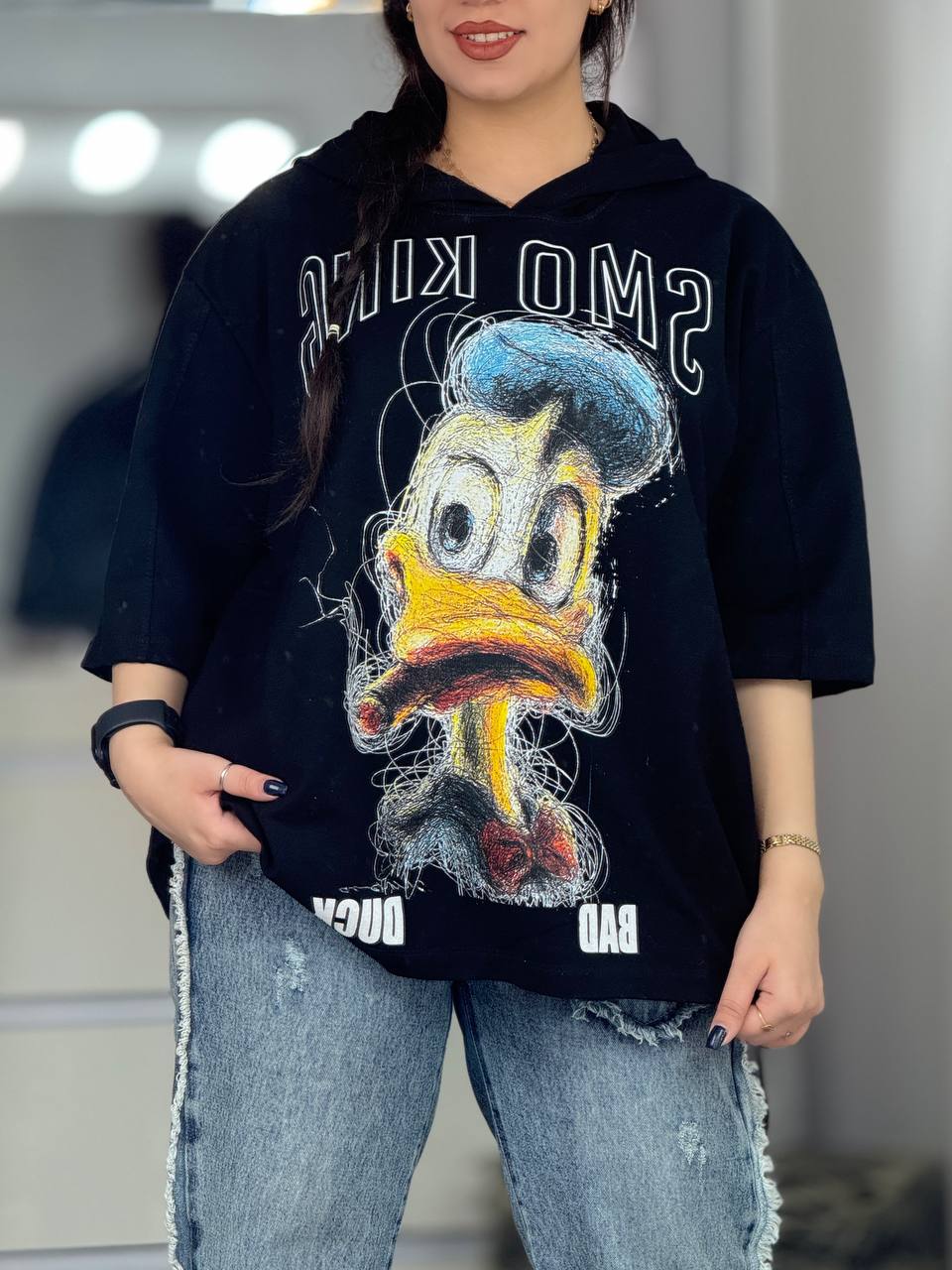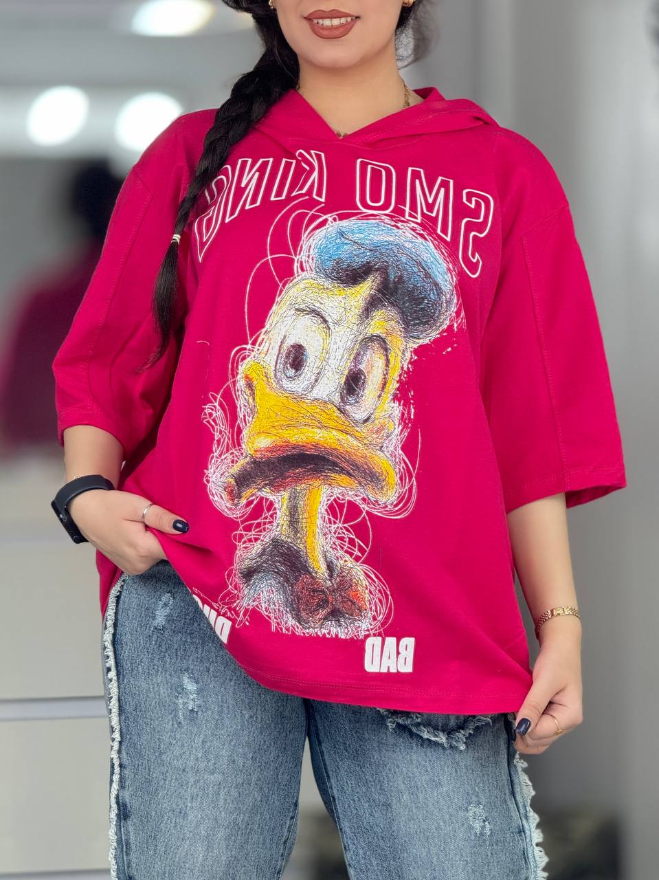 تیشرت باکسی کلاهدار اردک بد کد 33438