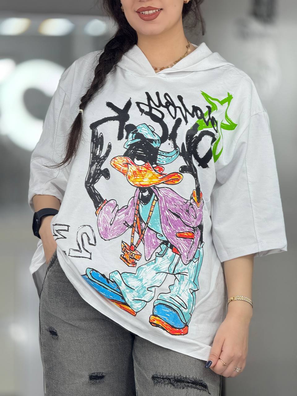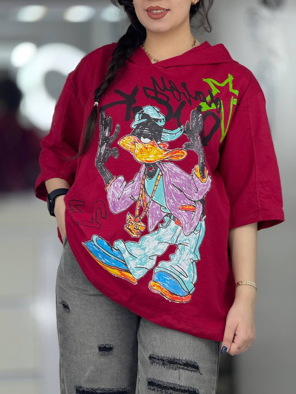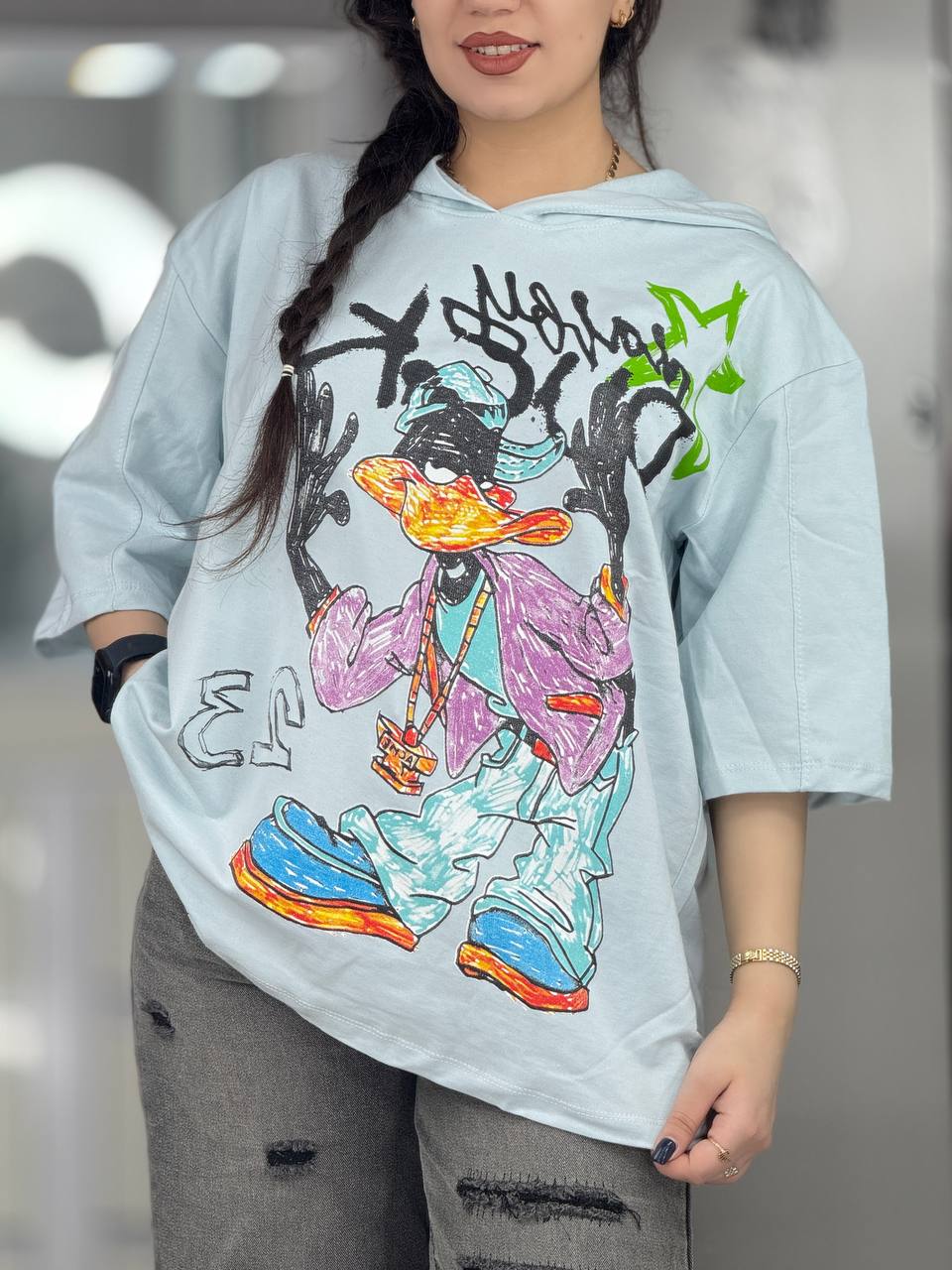 تیشرت باکسی کلاهدار دافی داک کد 33439
