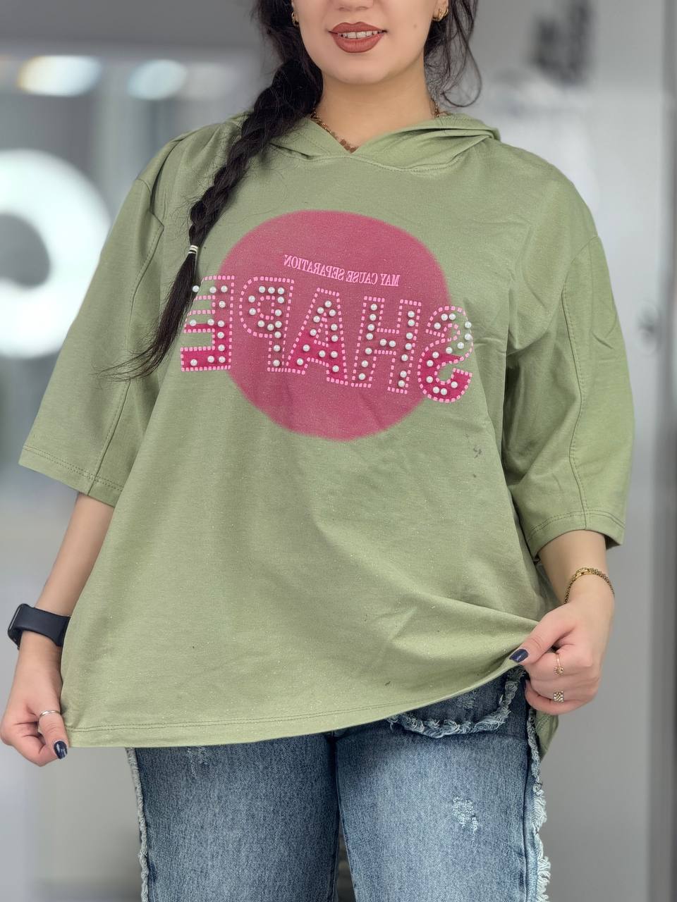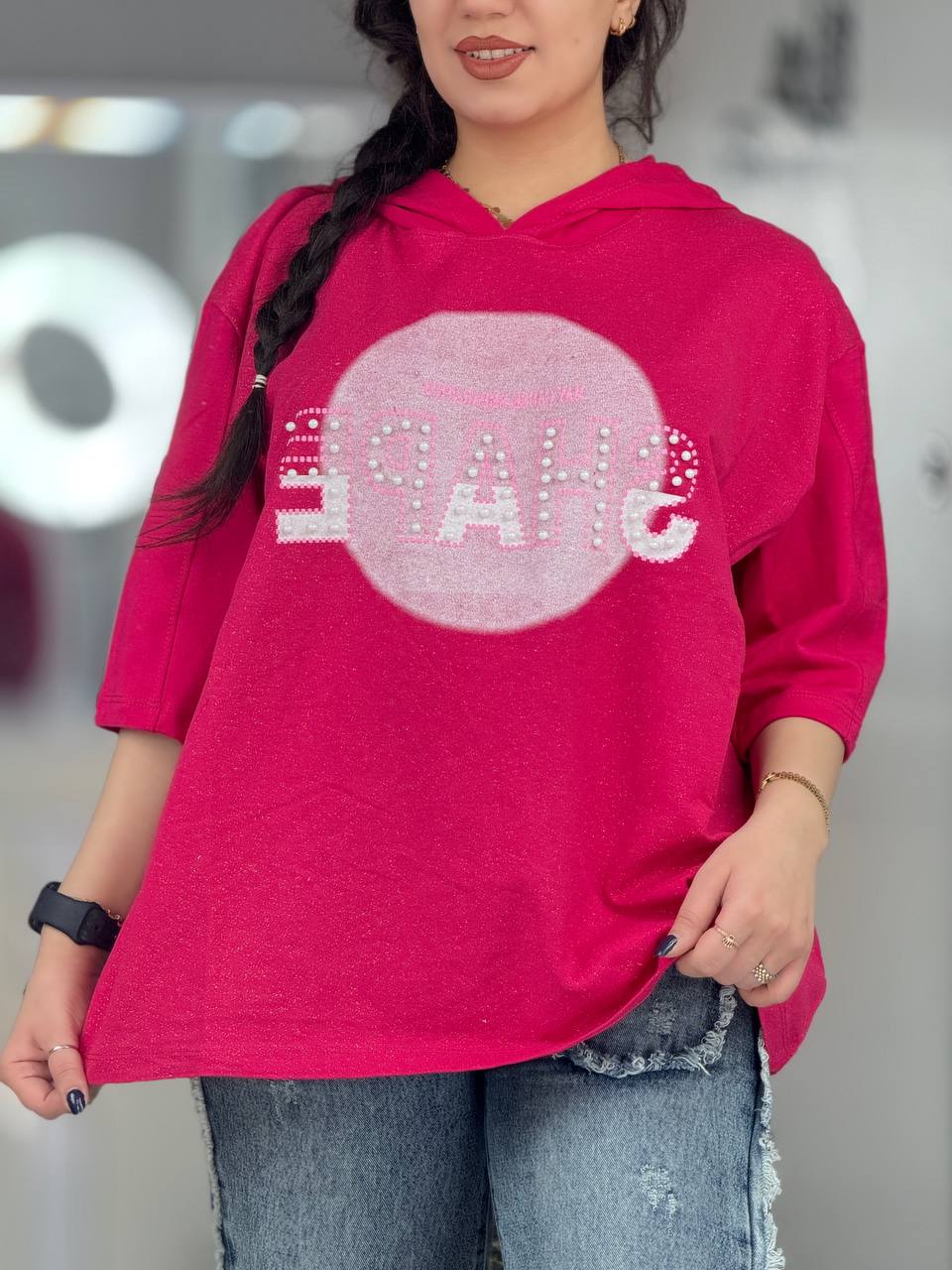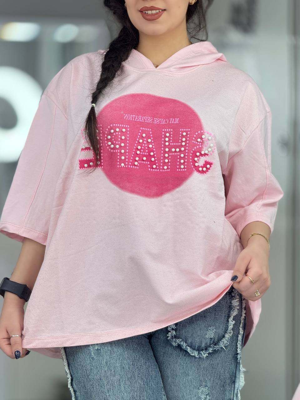 تیشرت باکسی کلاهدار مرواریدی کد 33441