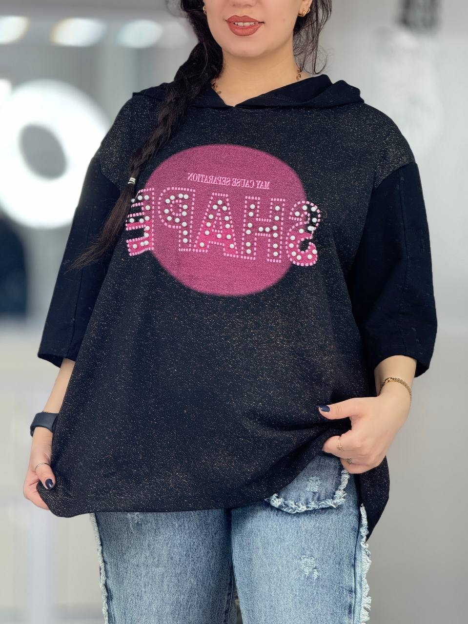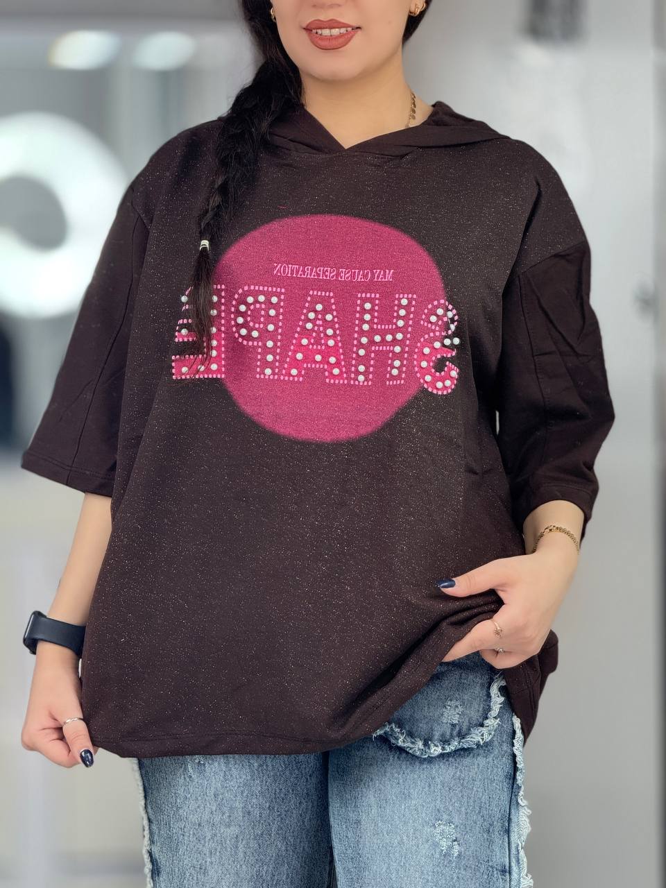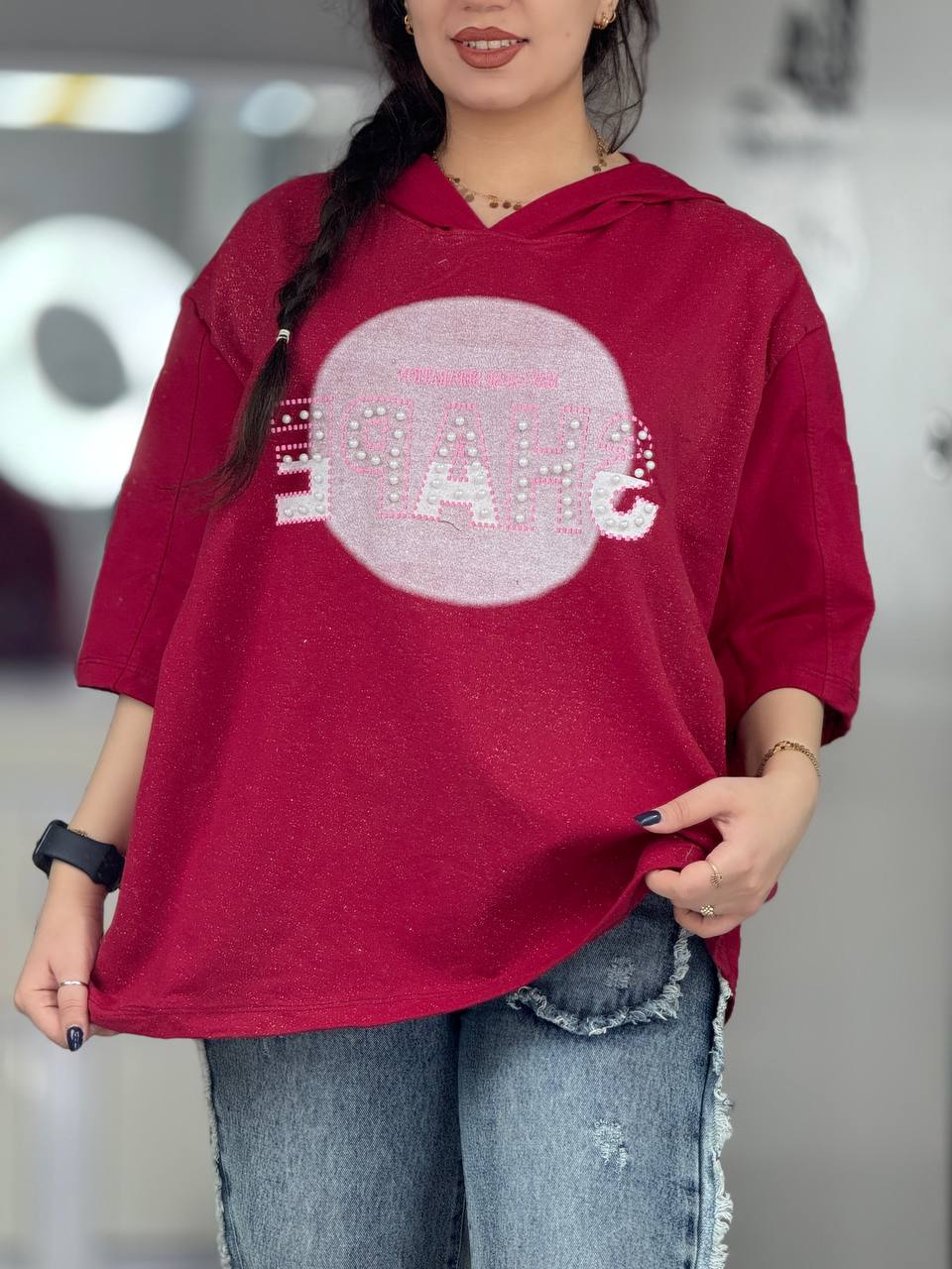 تیشرت باکسی کلاهدار مرواریدی کد 33441