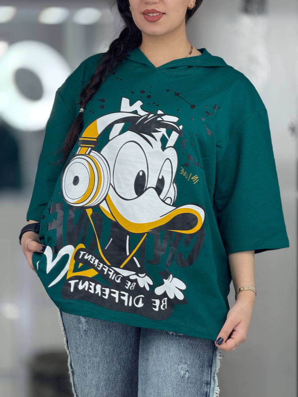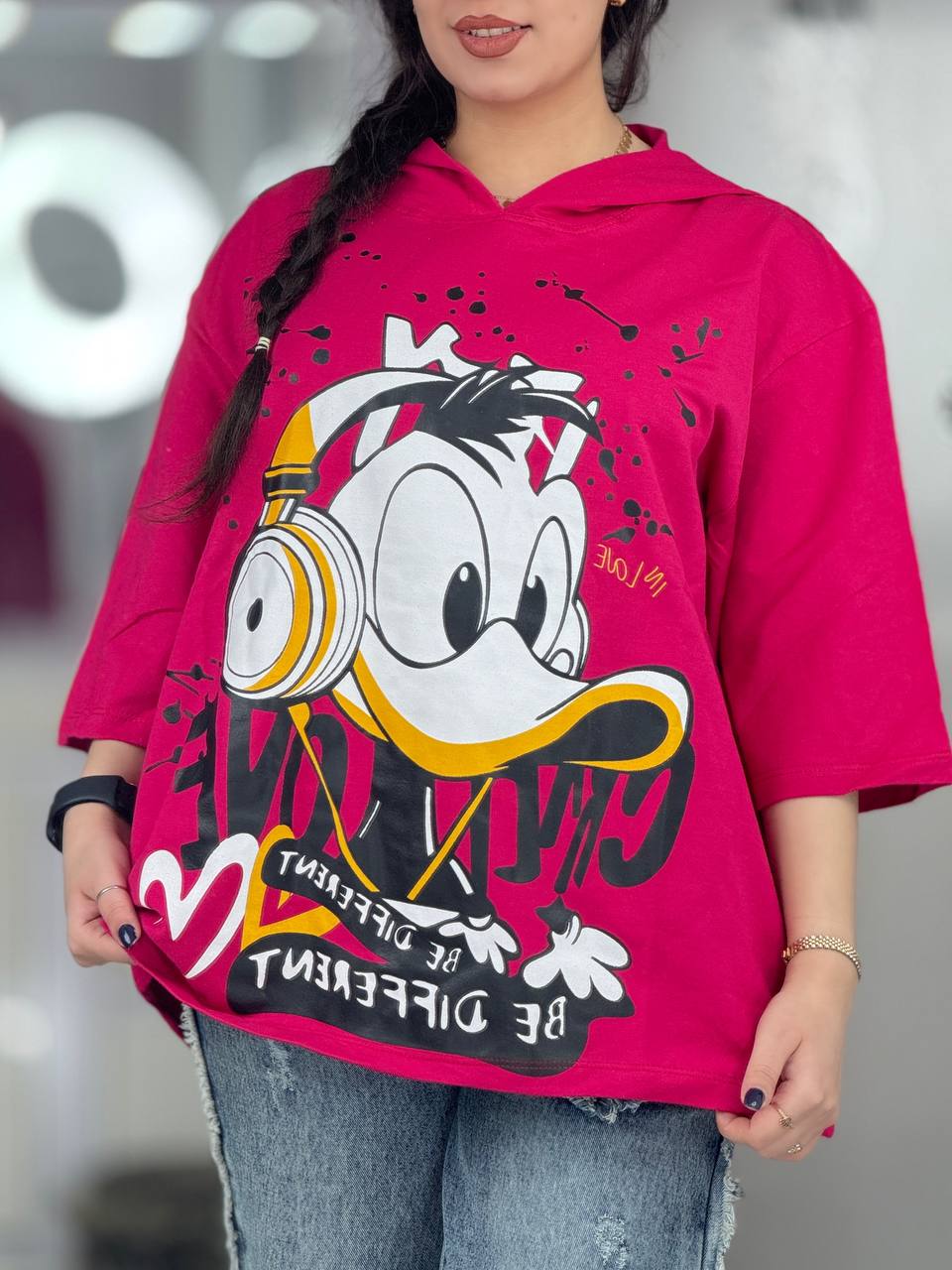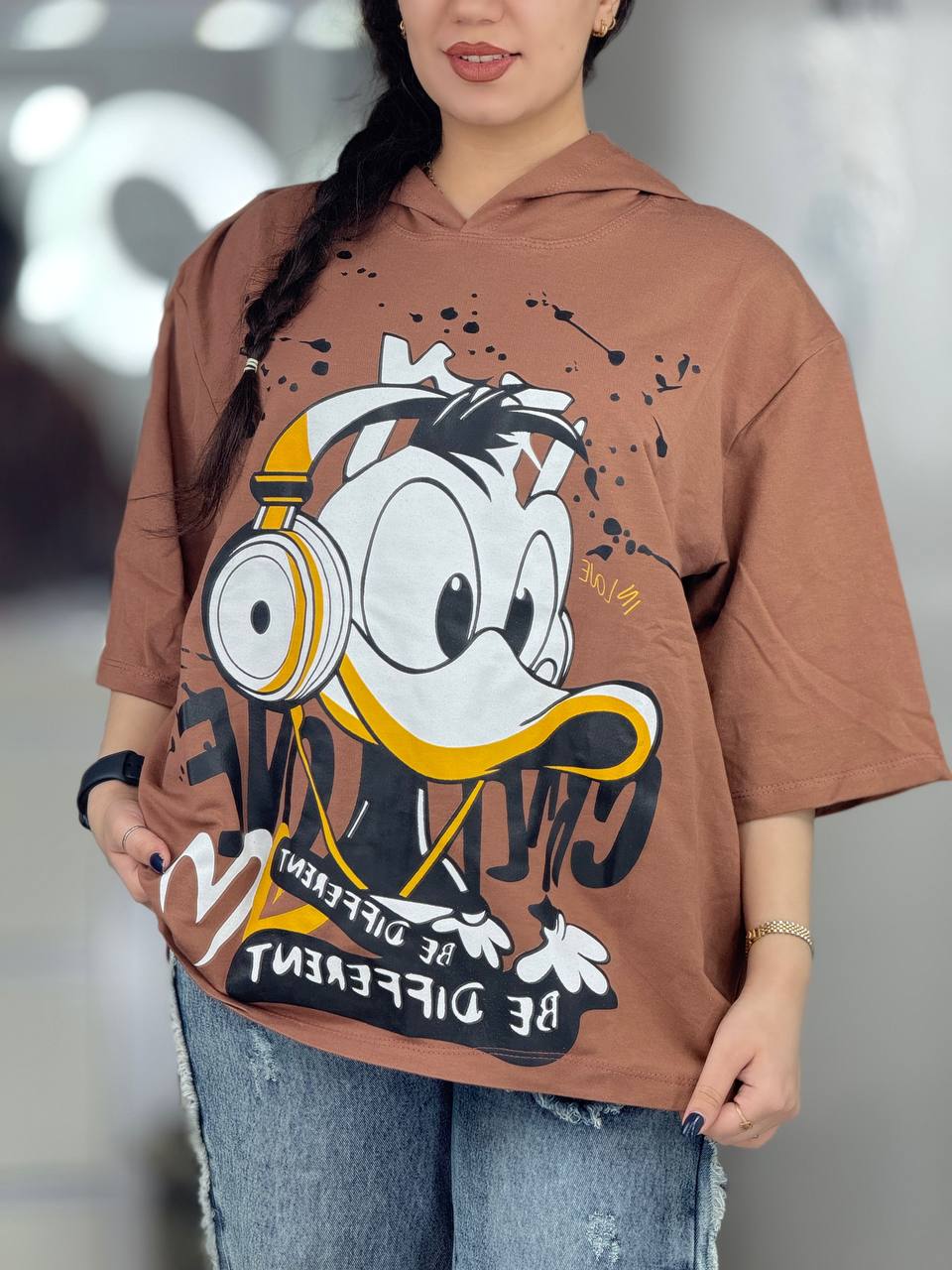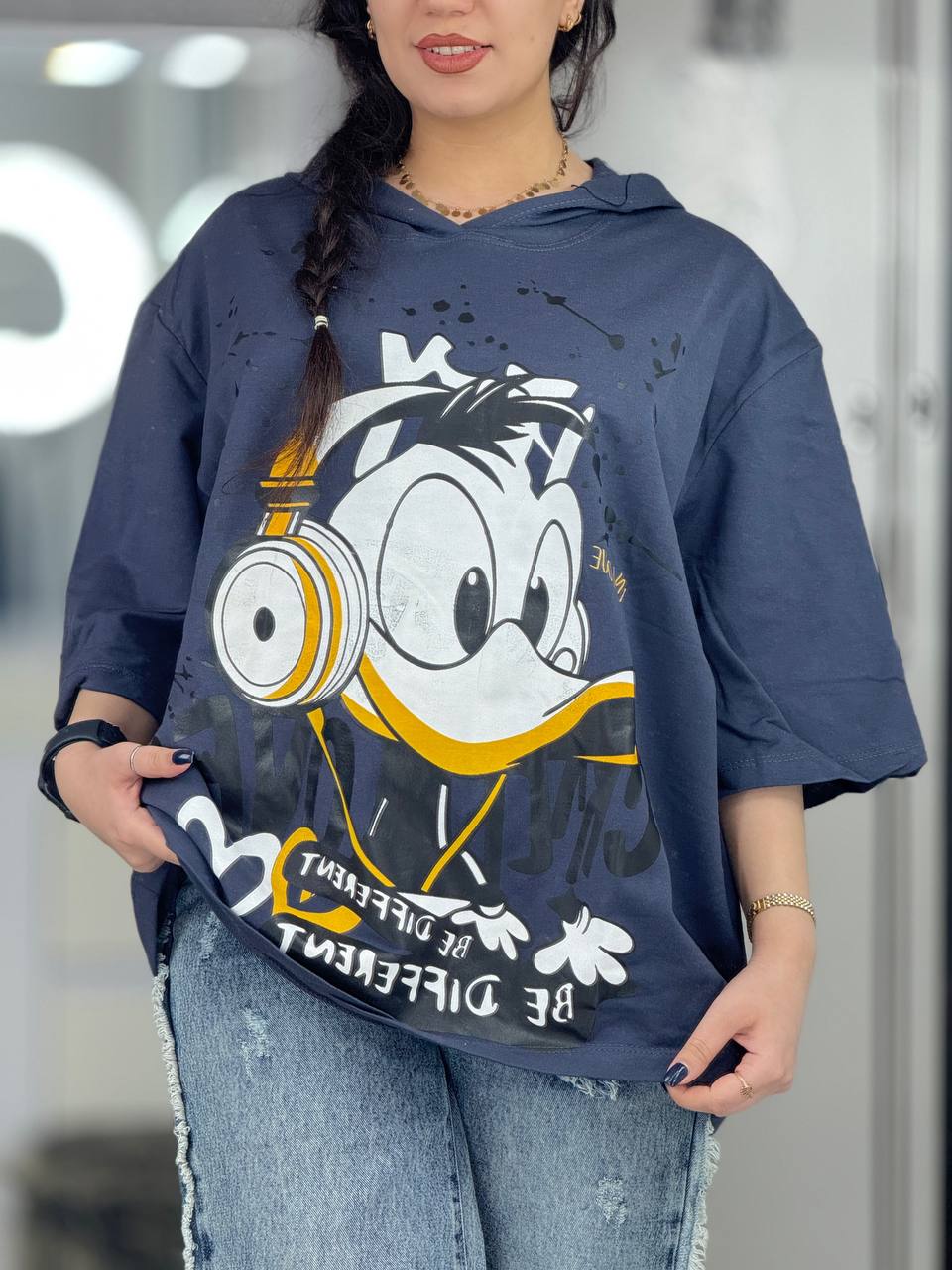 تیشرت باکسی کلاهدار اردک و هدفون کد 33444