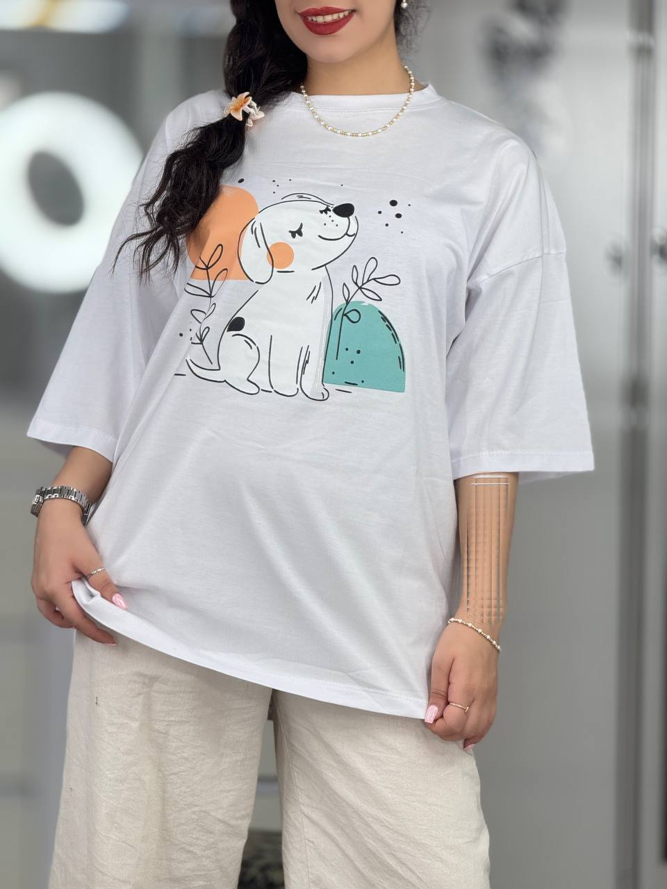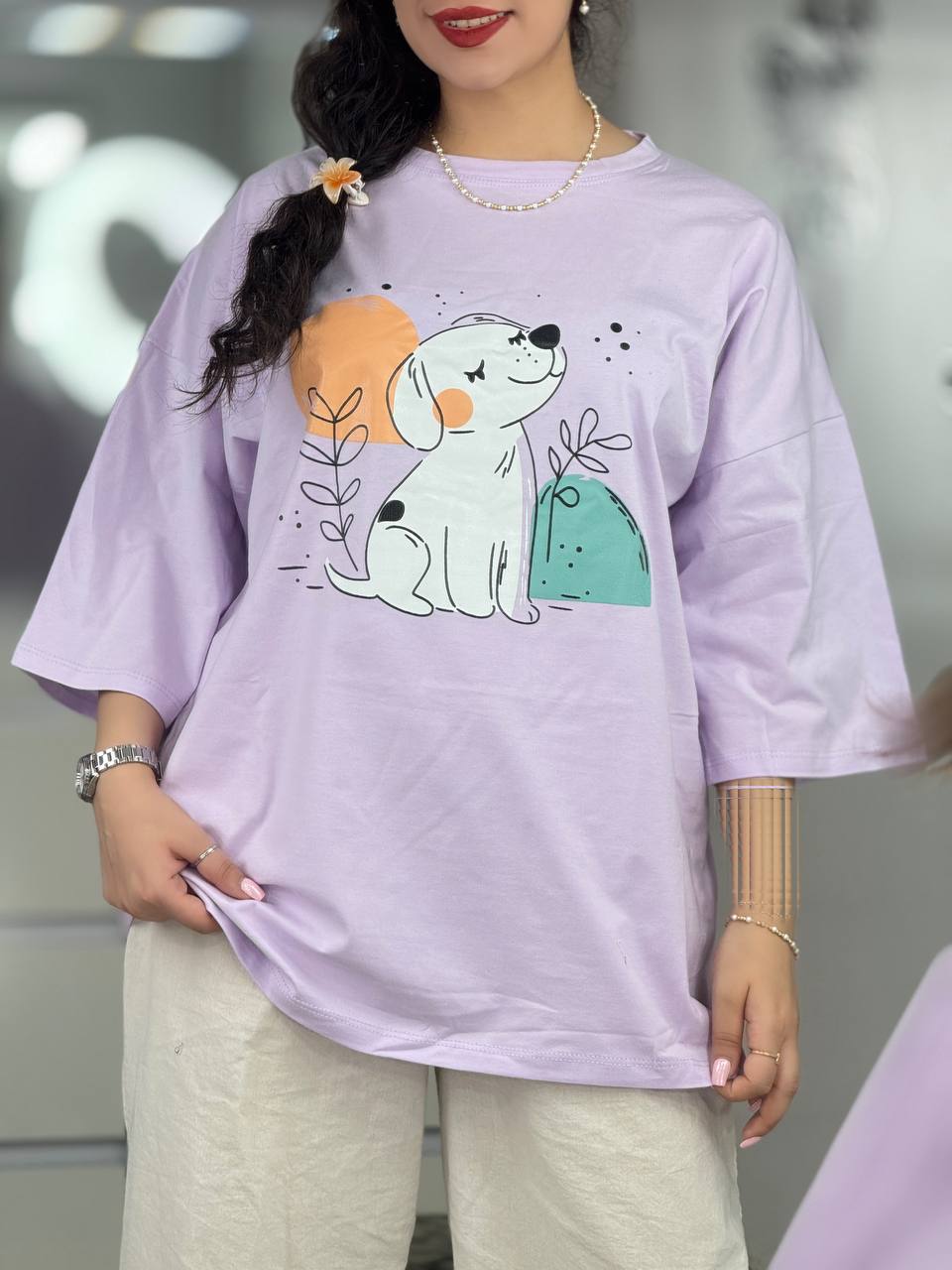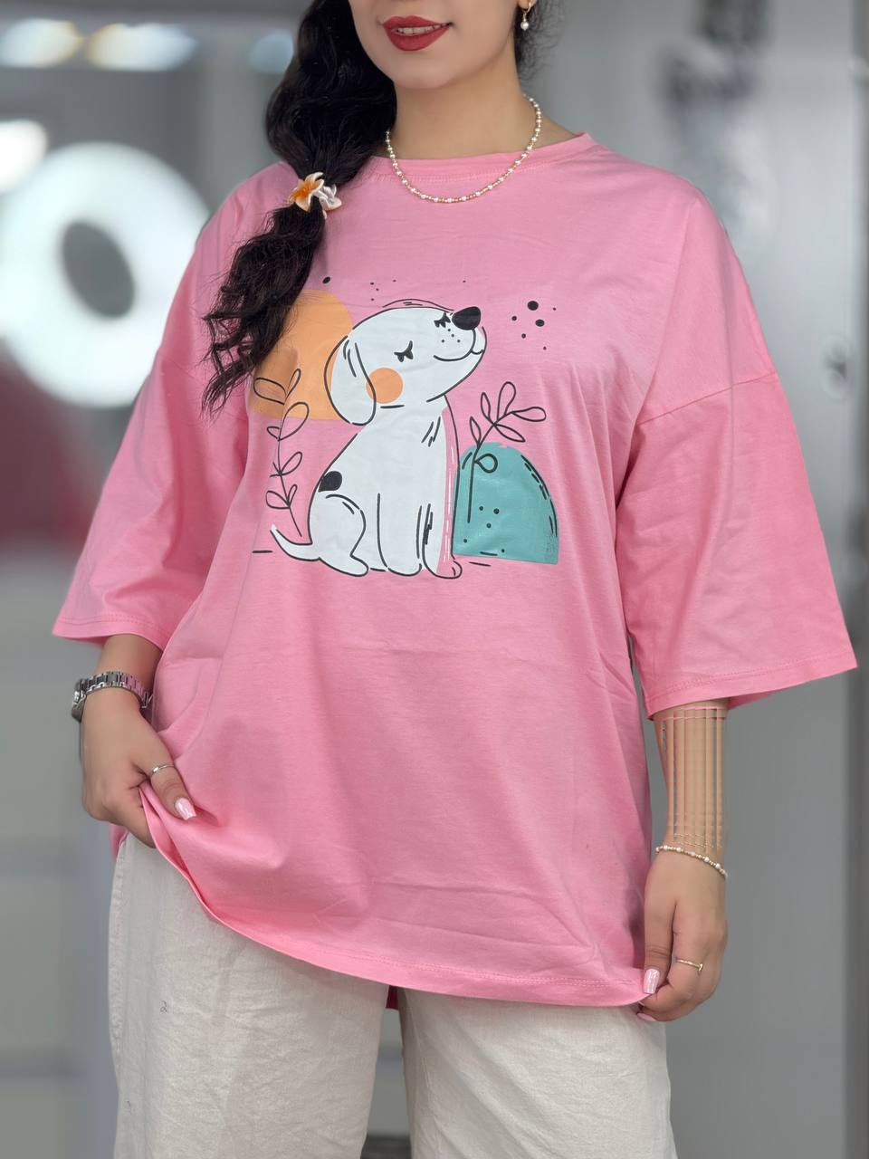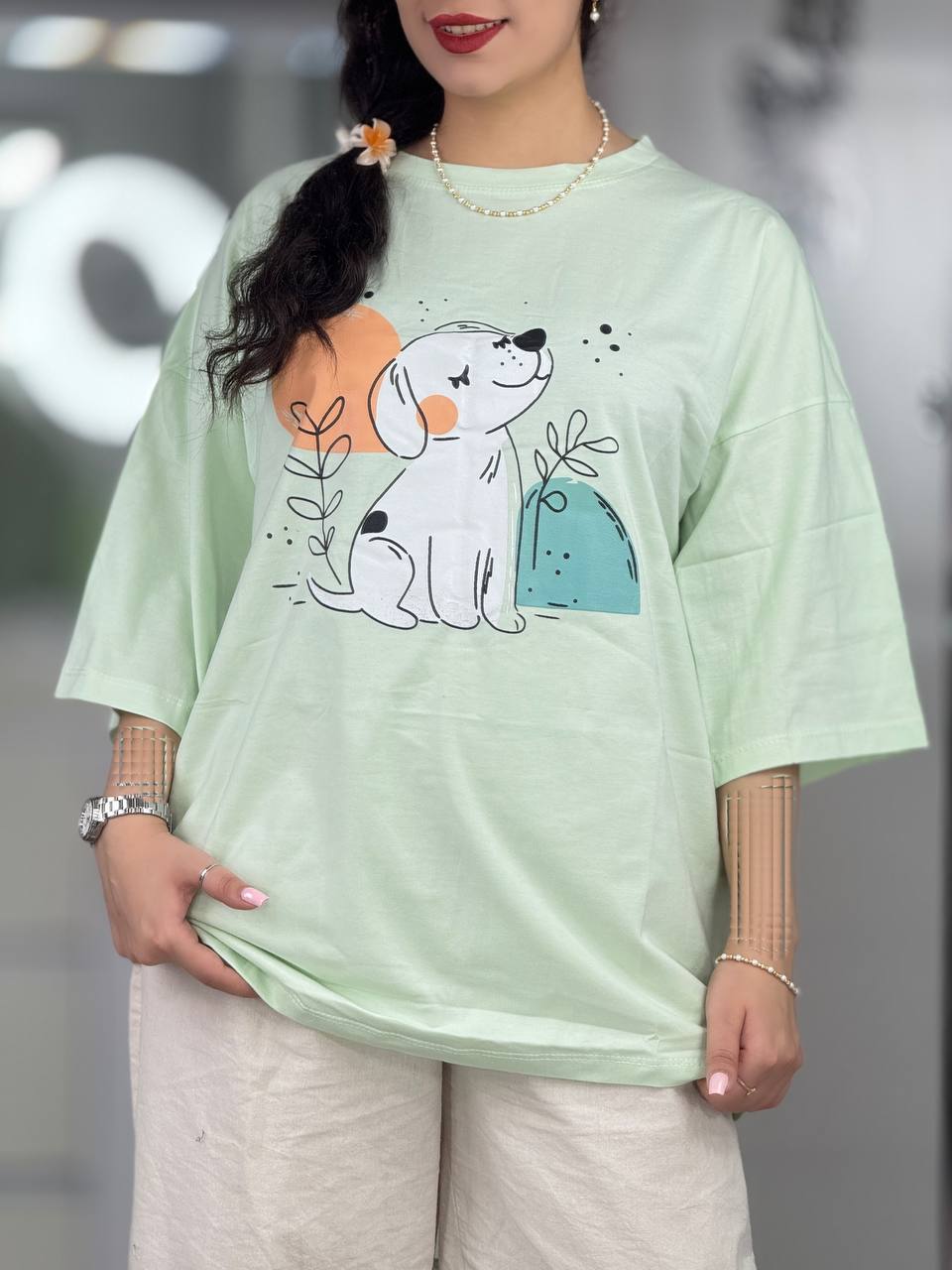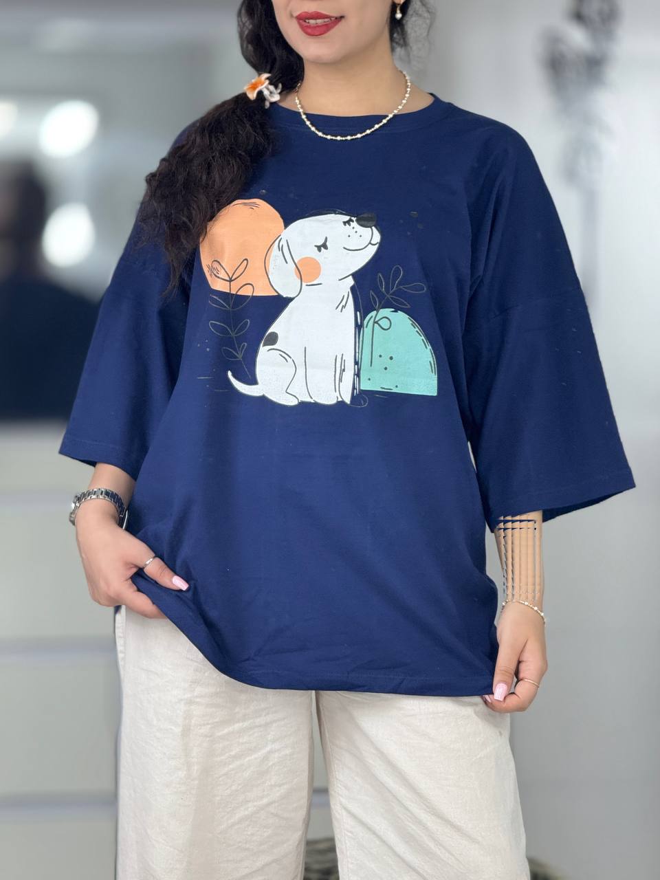 تیشرت لانگ طرح سگ کد ۵۹۵۰