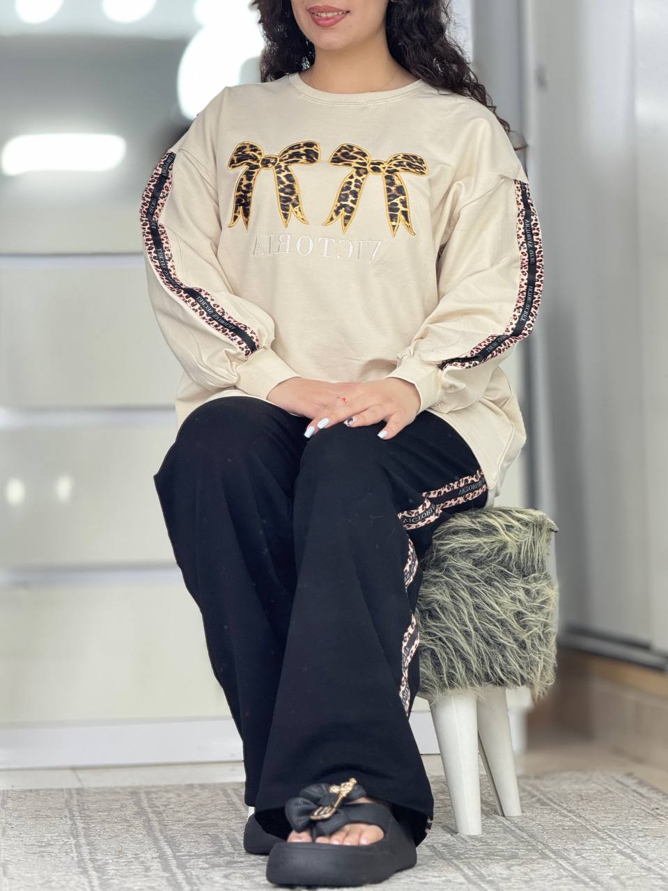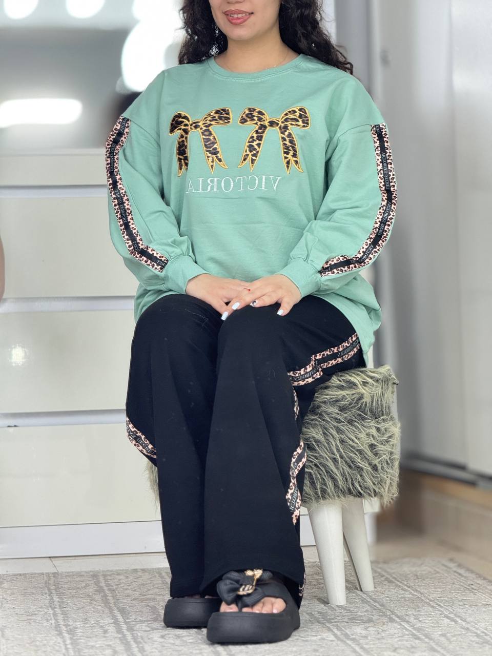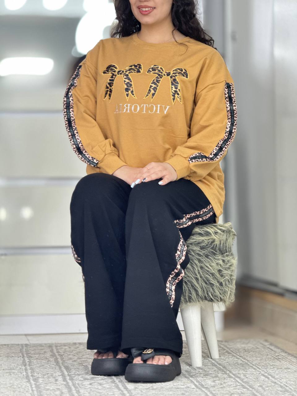 ست دورس شلوار پاپیون پلنگی کد 6096