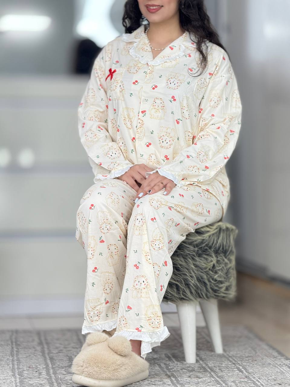 ست دکمه دار استین بلند خرگوش پاپیون قرمز 6228
