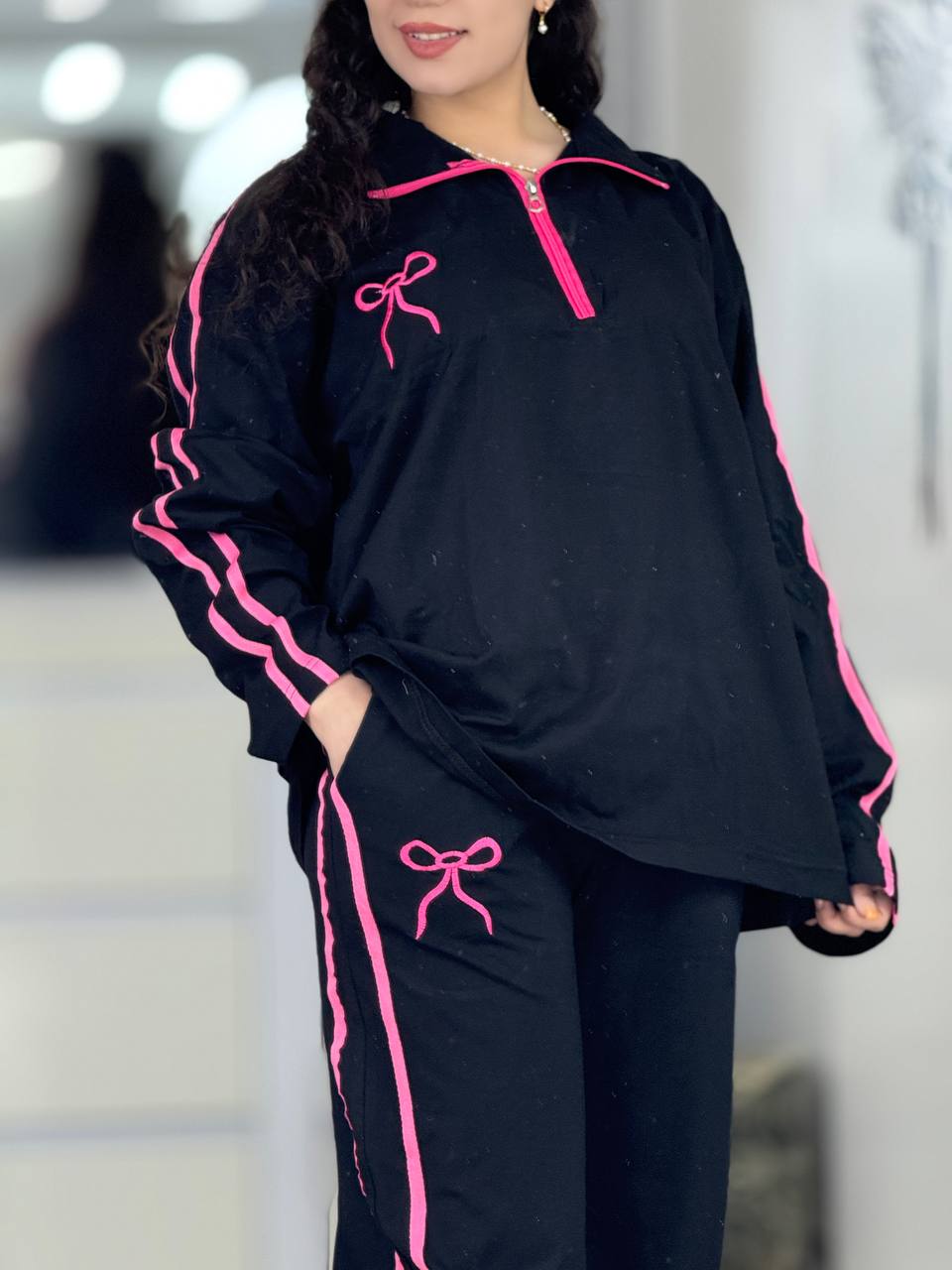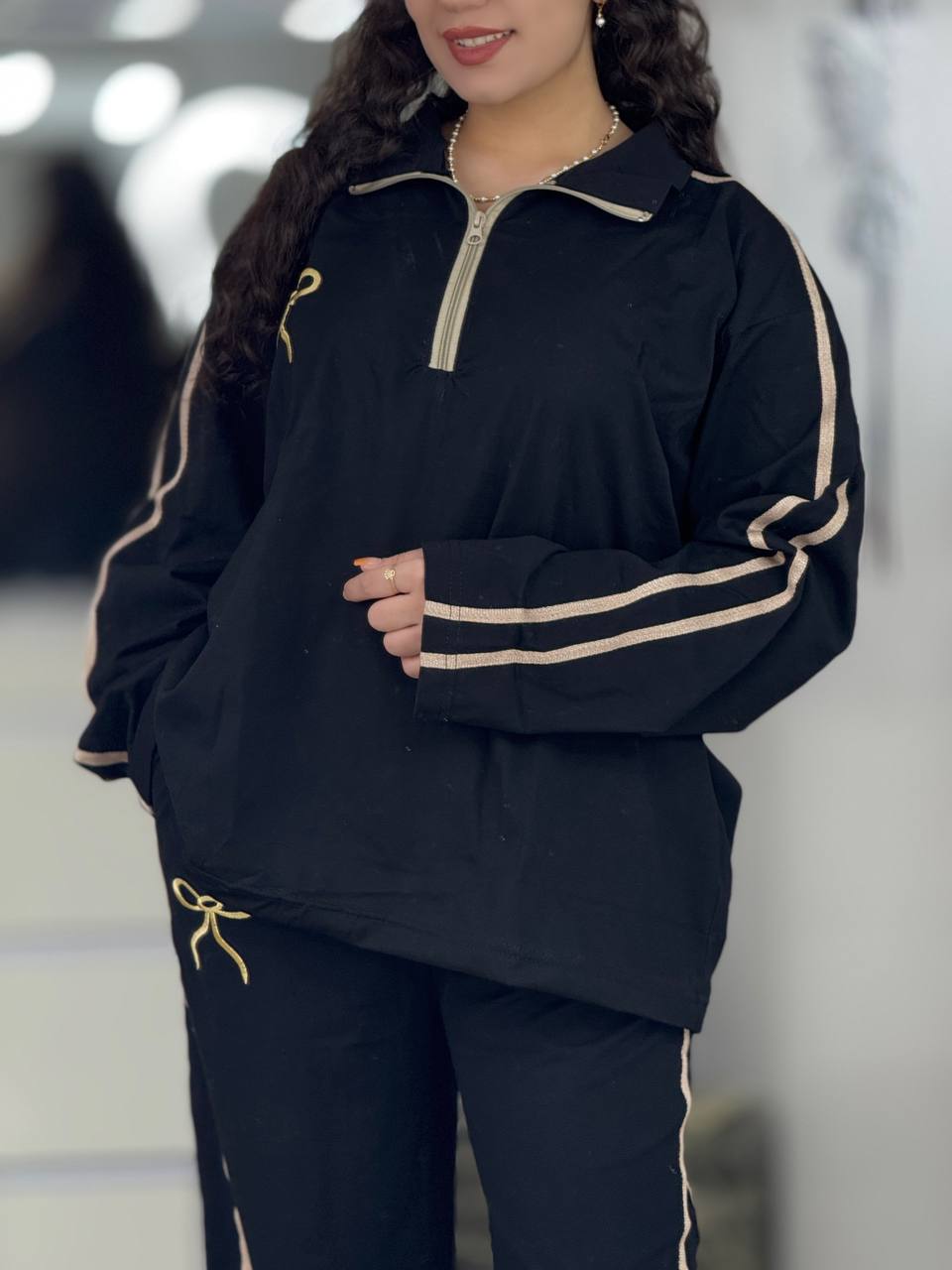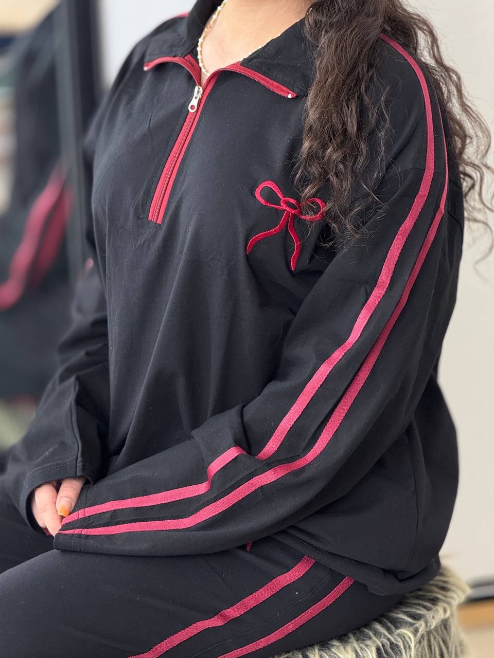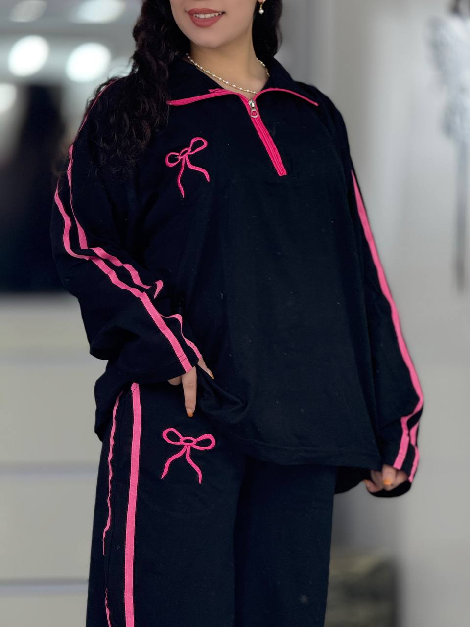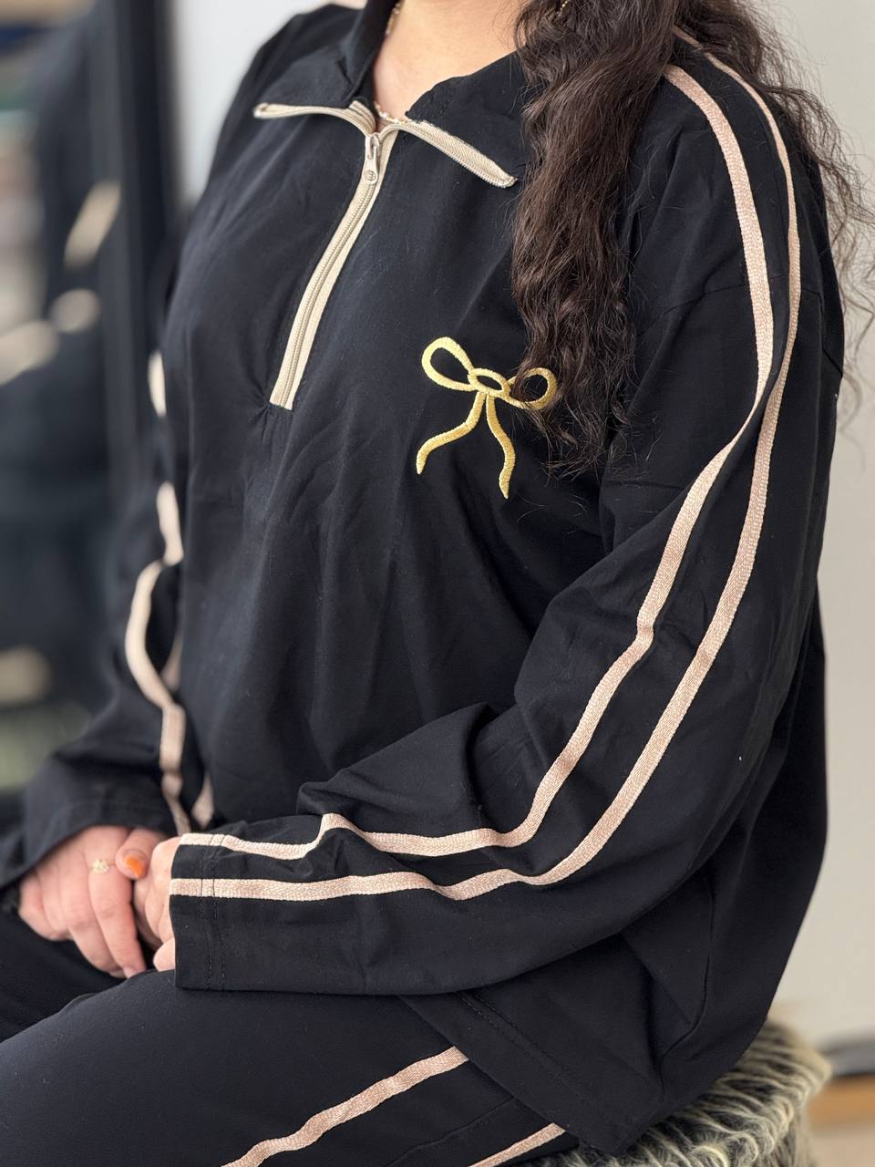 ست بگی نیم زیپ پاپیون استین بلند کد 6237