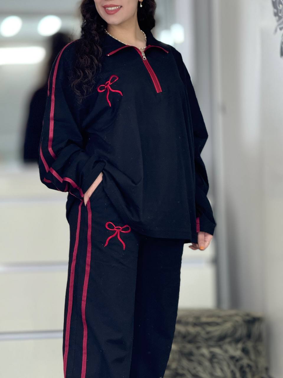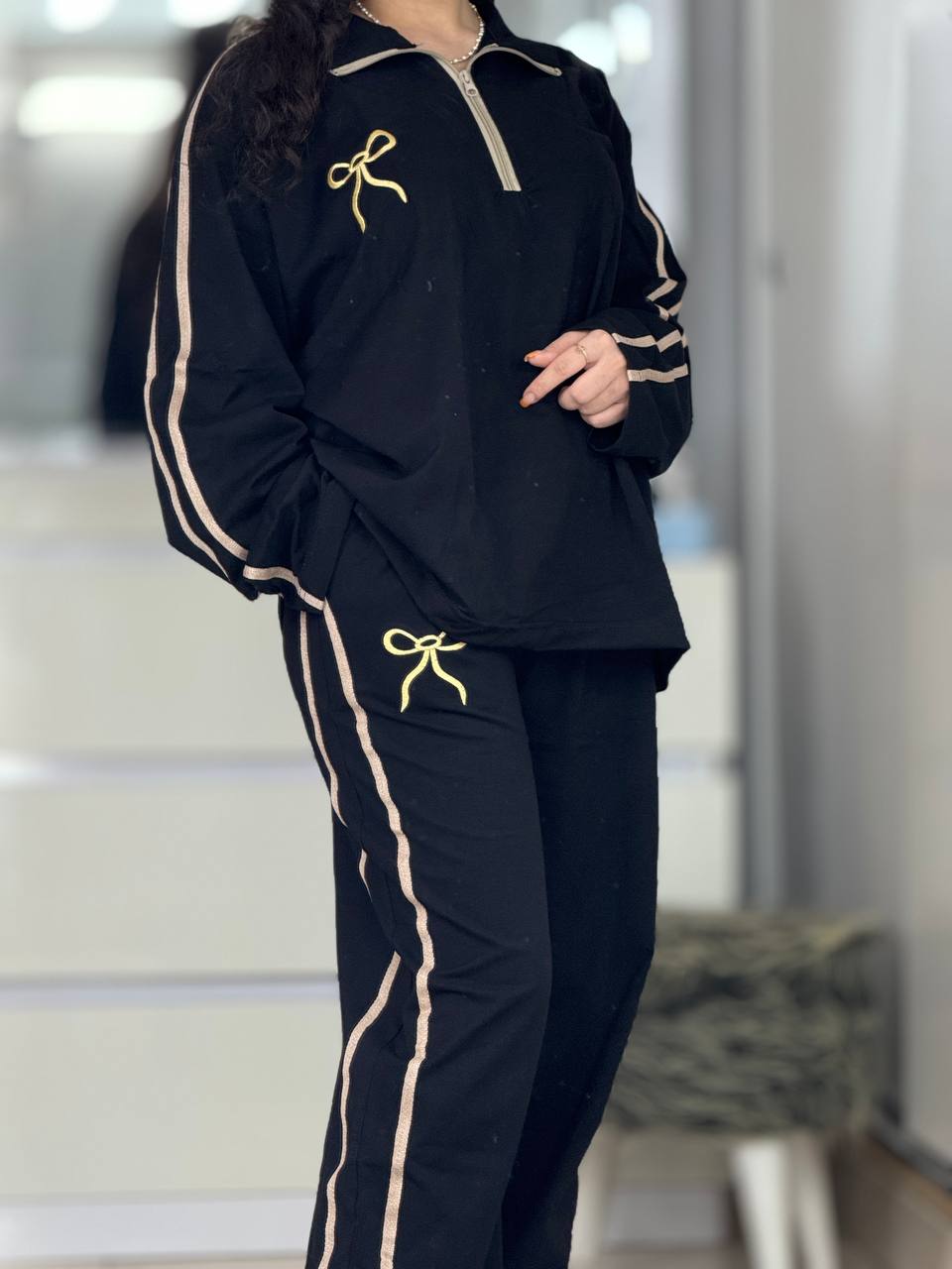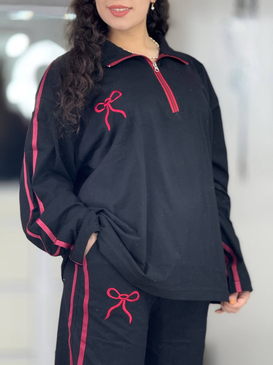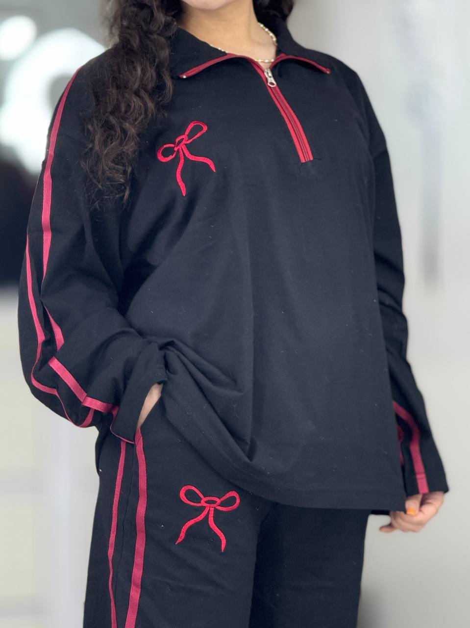 ست بگی نیم زیپ پاپیون استین بلند کد 6237