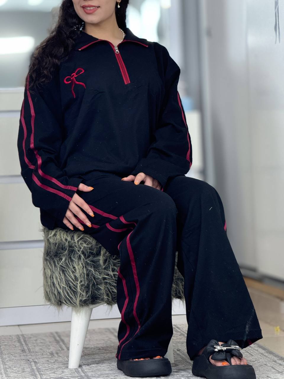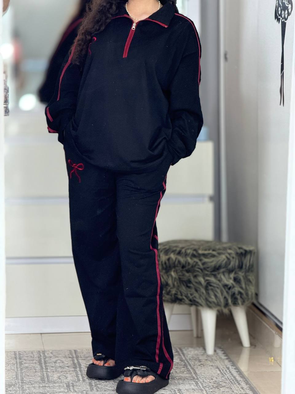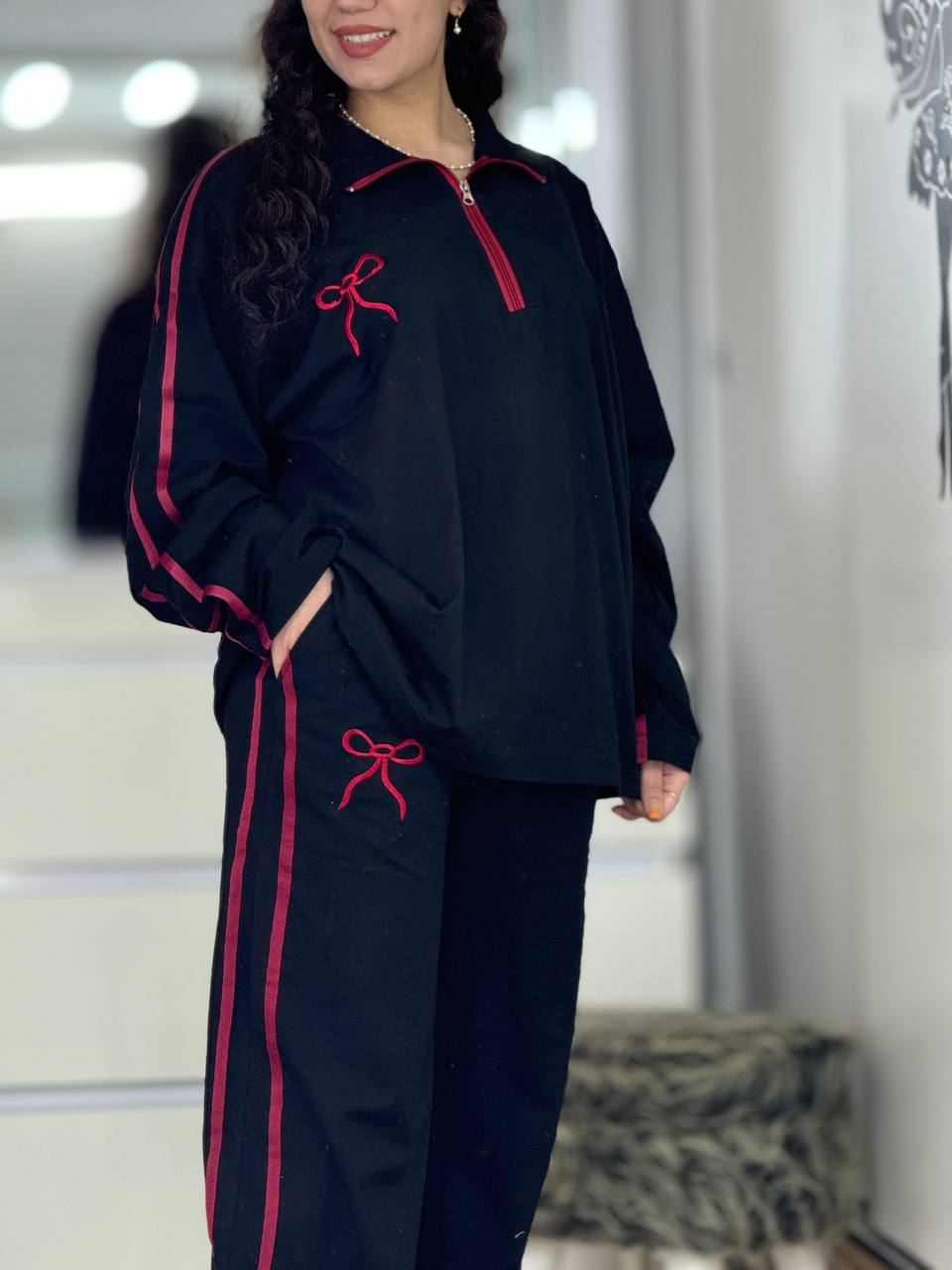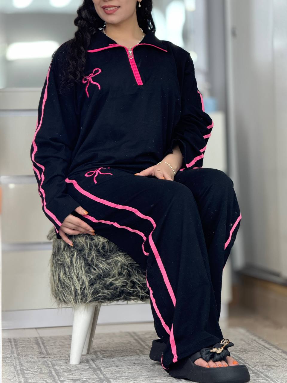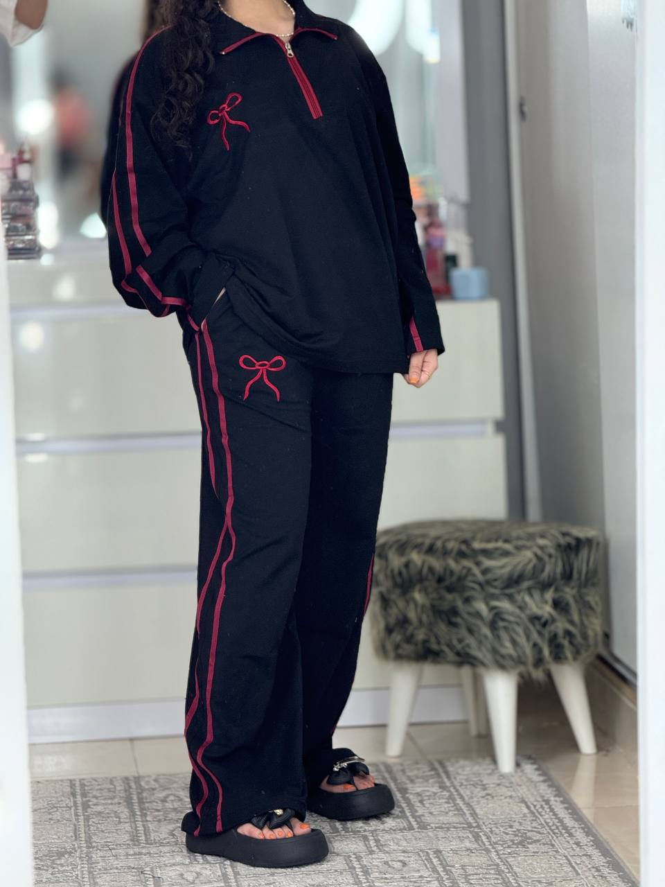 ست بگی نیم زیپ پاپیون استین بلند کد 6237