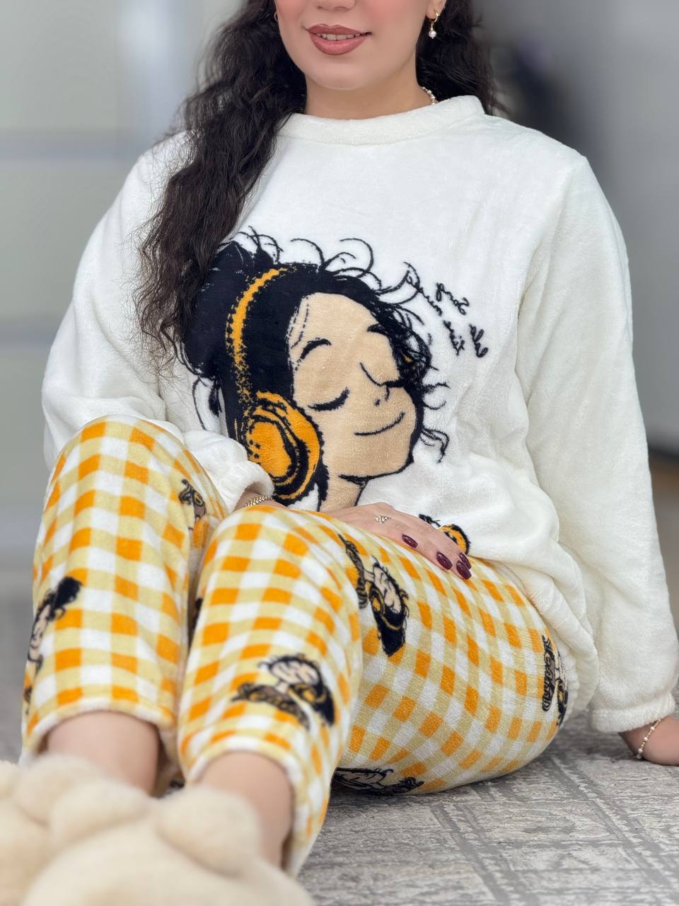 ست حوله ای شلوارچهارخونه زرد کد 6311
