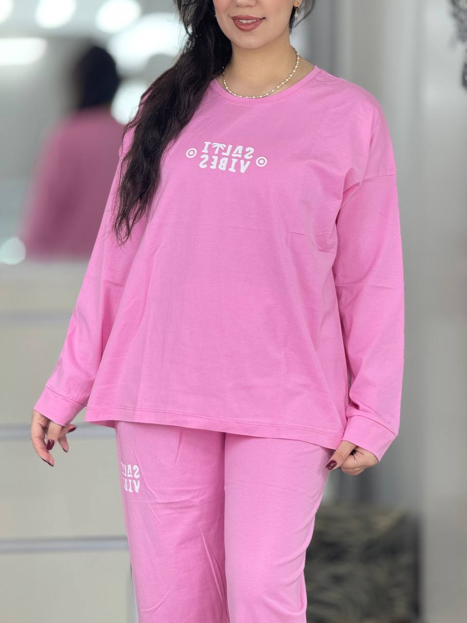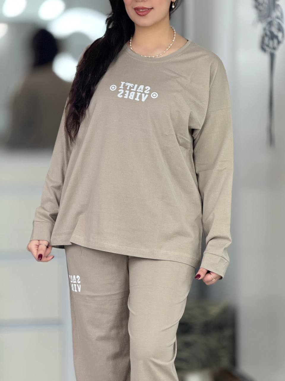 ست بلوزشلوار استین بلند طرح فونت کد 6340