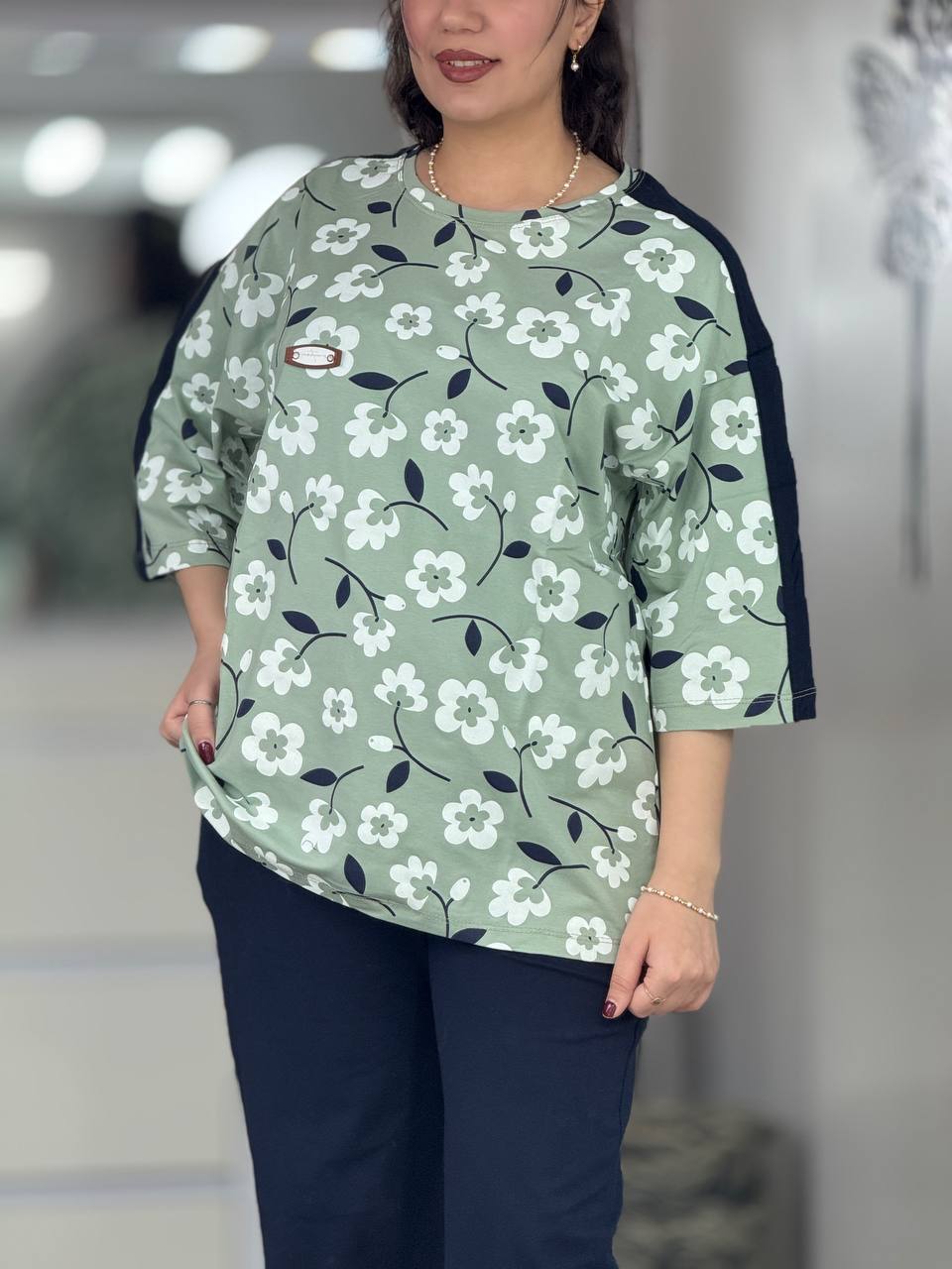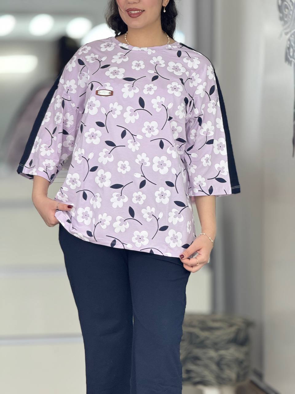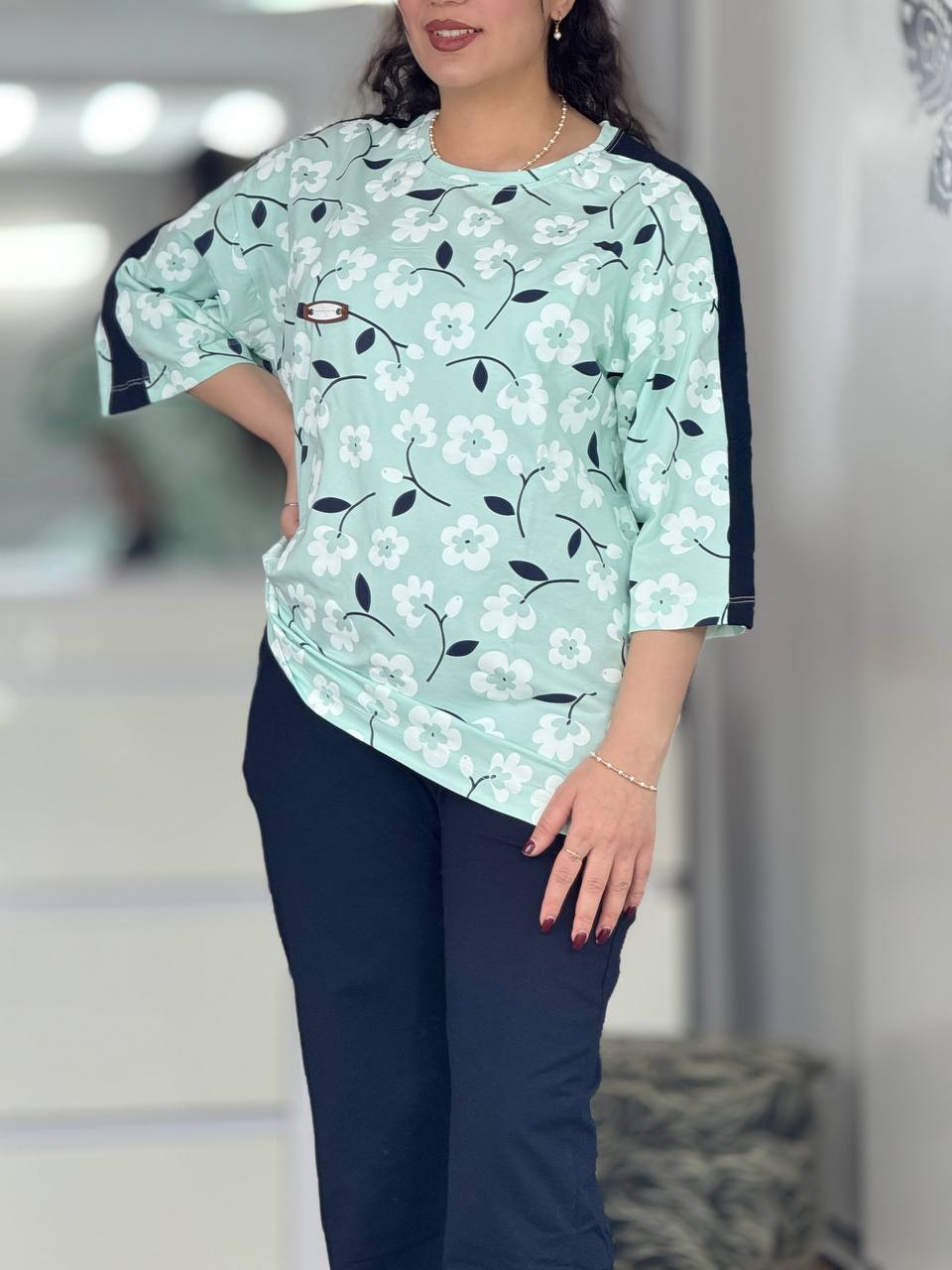 ست بگی گلدار شلوار سورمه ای کد 6404