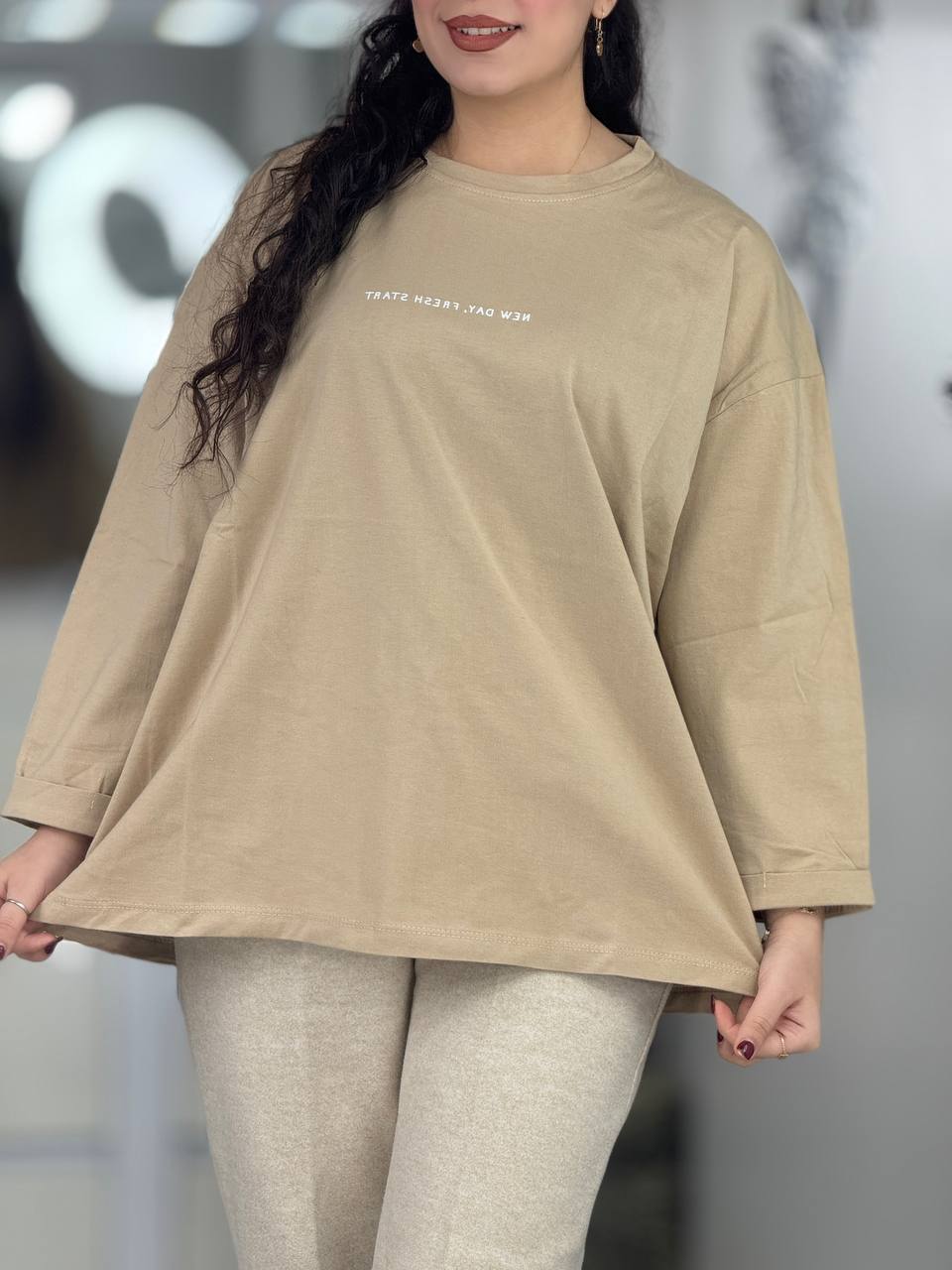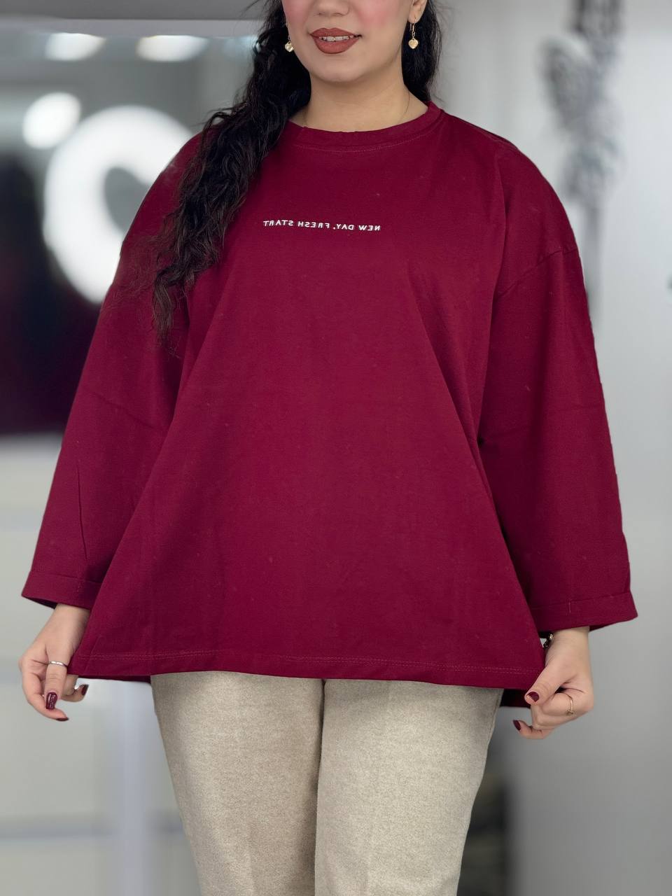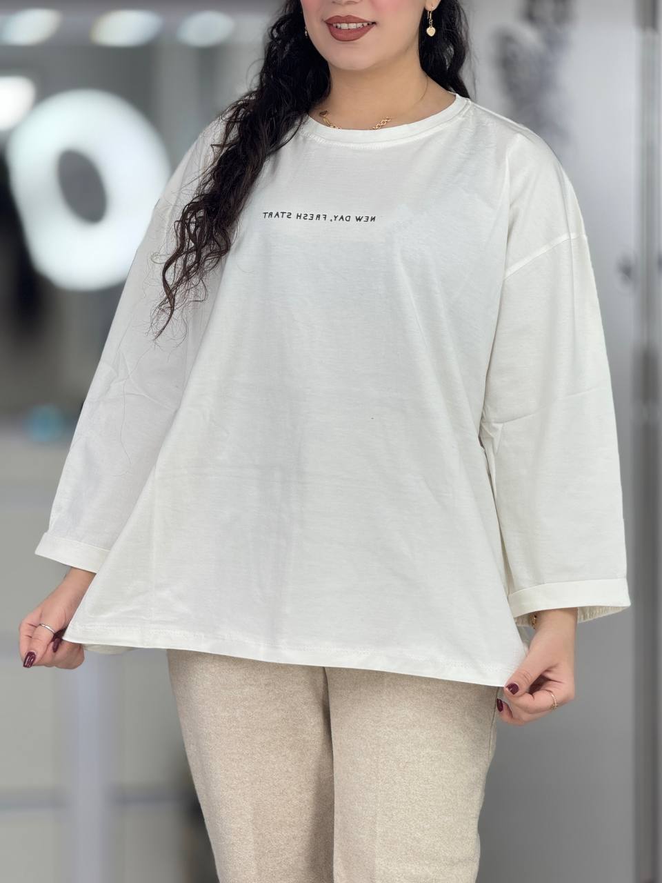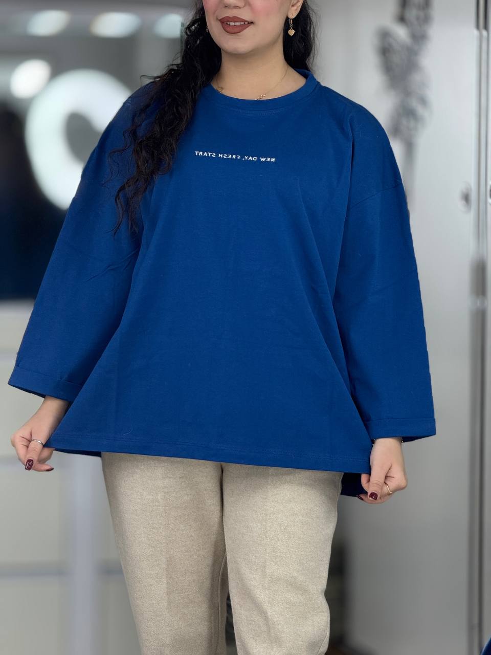 بلوز استین بلند پاکتی طرح فونت کد 6453