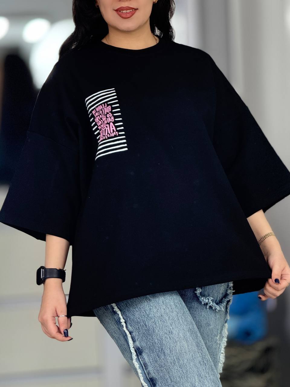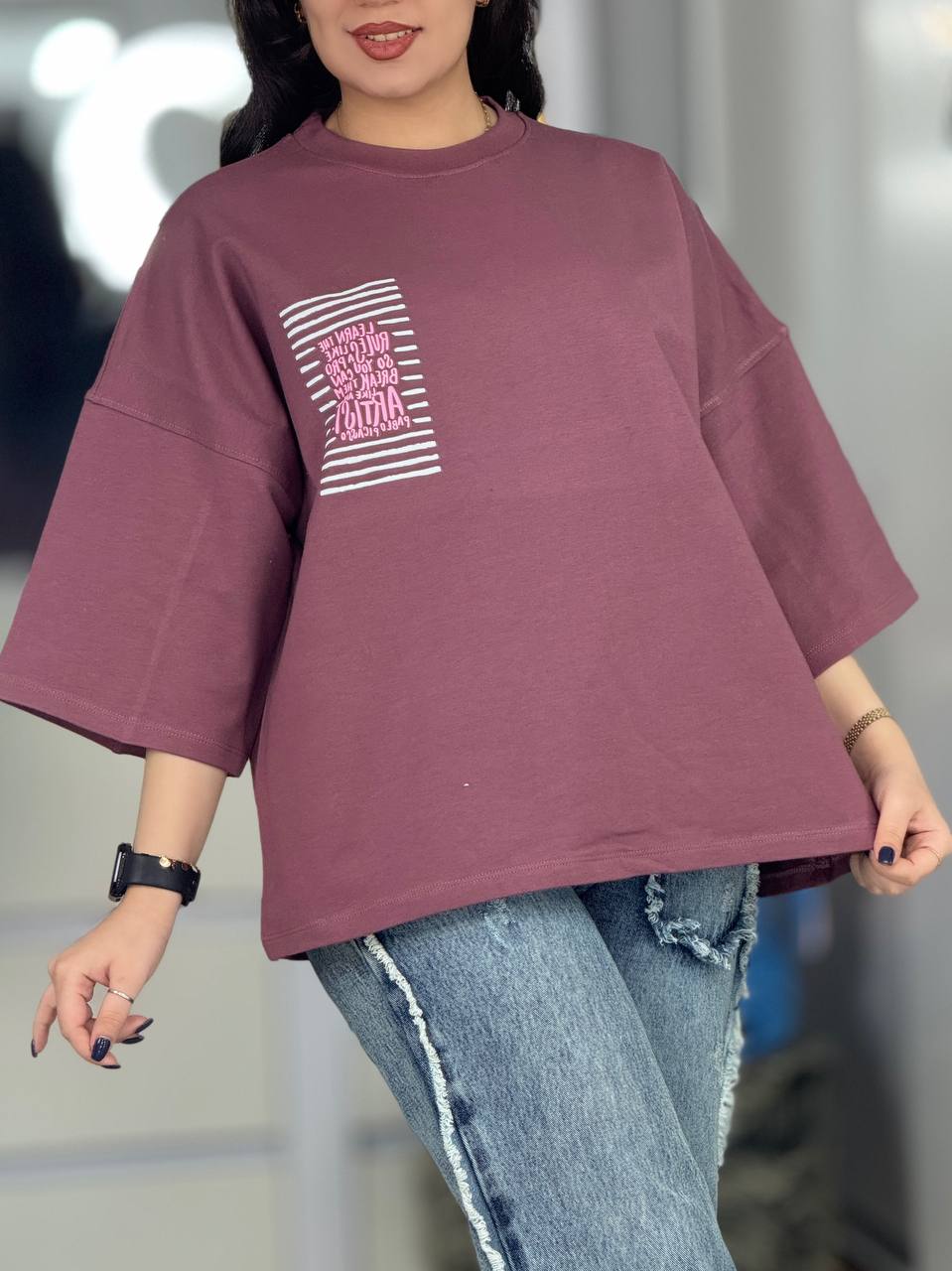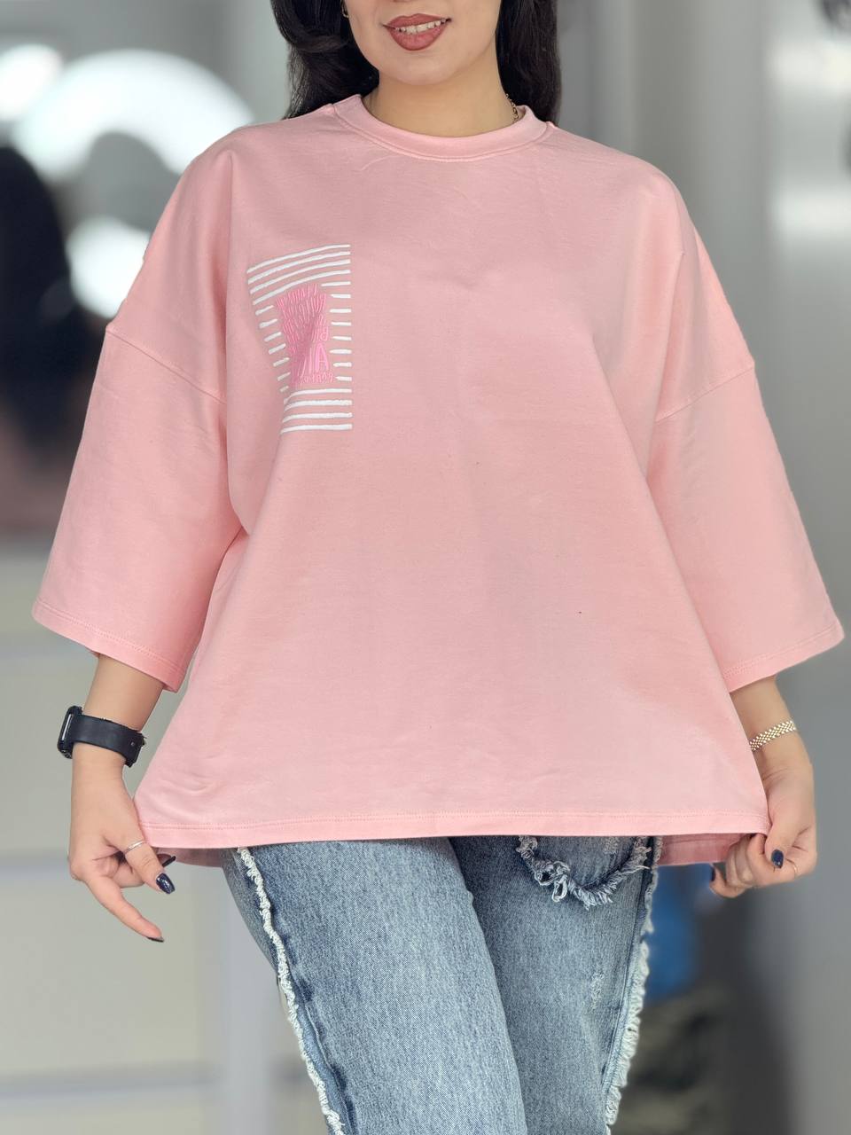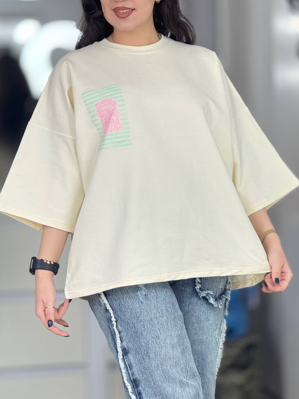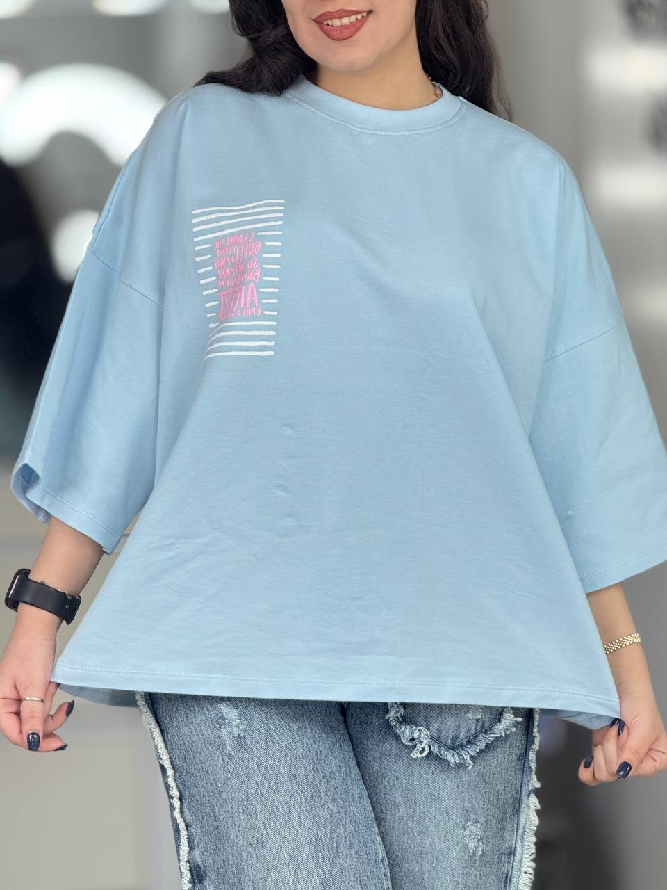 تیشرت باکسی طرح گوشه سینه کد 6602