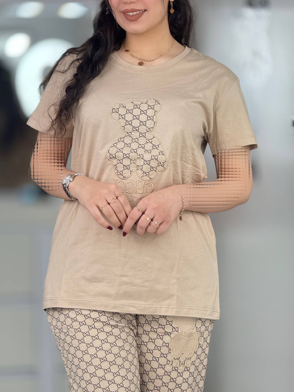 ست گوچی استین کوتاه خرس بزرگ نسکافه ای کد 730